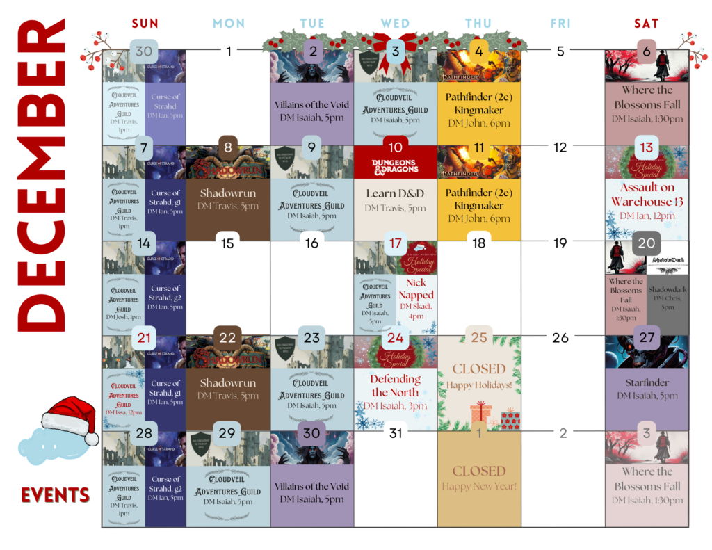 RPG Holiday Special: Festive one-shots featuring Assault on Warehouse 13, Nick Napped, Defending the North, and a special guild holiday party for Cloudveil Adventures!
